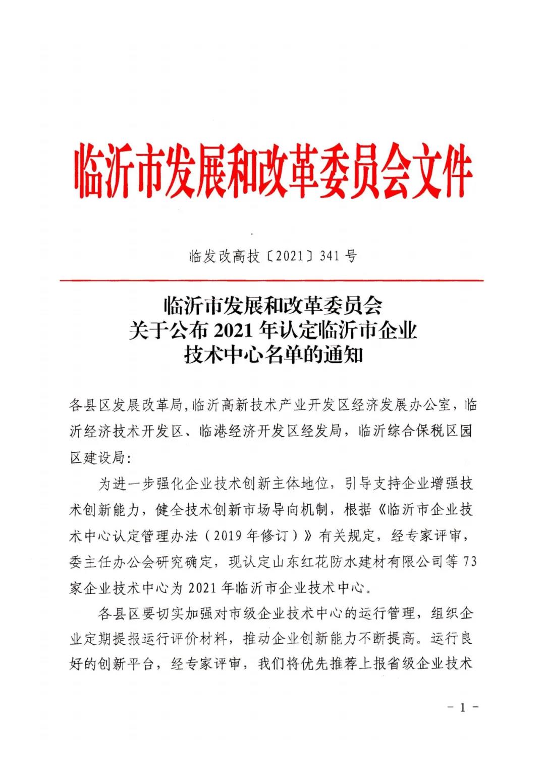 除了本次获得市级“企业技术中心”外,迄今已获得国家高新技术企业、山东省重大科技创新工程、临沂市球形硅微粉技术创新中心、临沂市硅基新材料企业重点实验室、临沂市工程技术中心、企业信用AAA、诚信经营示范AAA、重服务守信用AAA等荣誉称号。